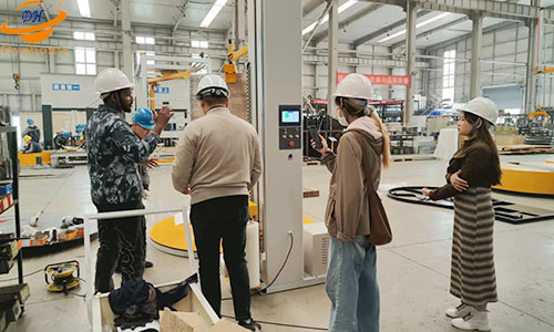 考察結(jié)束后,帶客戶參觀了工廠,佳森包裝占地面積10000平米,擁有800平米的辦公樓及研發(fā)中心,公司產(chǎn)品包括:托盤纏繞機、在線纏繞機、旋臂纏繞機、行李纏繞機、臥式纏繞機等,支持各類貨物的定制服務(wù),滿足加大尺寸、高度的需求。