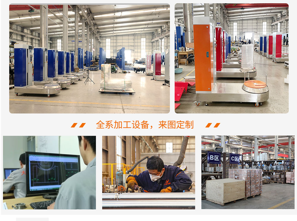 然后操作人員按操作面板上的啟動按鈕,設備自動進行包裝,一般行李包3—5層即可!包裝完畢后,操作人員手工切斷薄膜,然后取走行李!